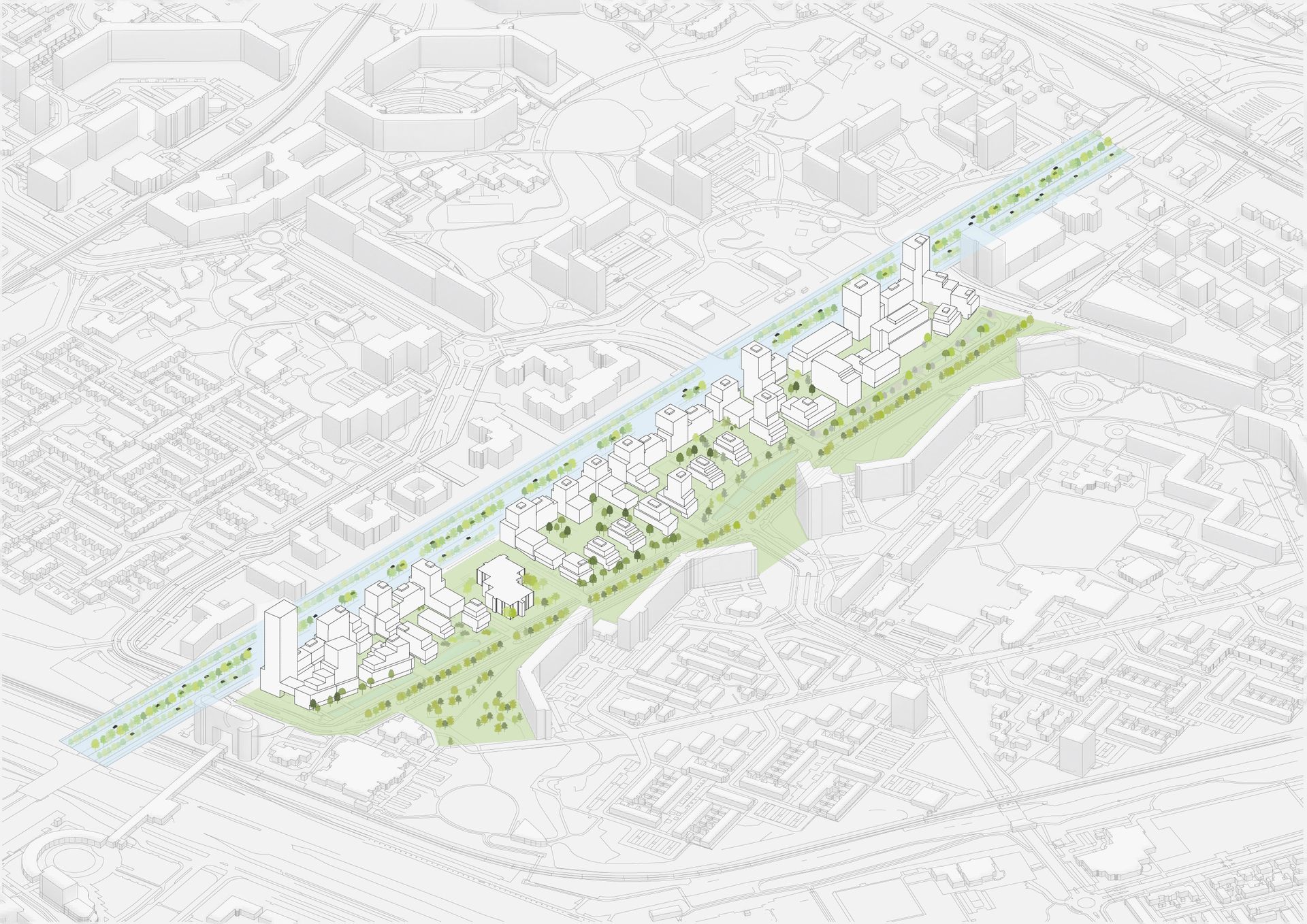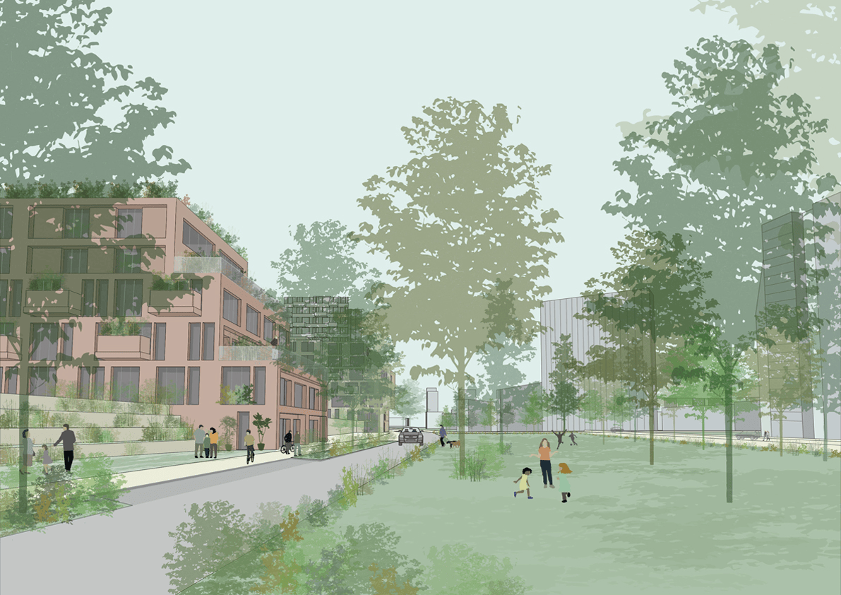 Zoetermeer, a post-war new town, aims to become a livelier residential and entrepreneurial city—attractive to pioneers and innovators—while strengthening its position within the Rotterdam–The Hague metropolitan region. Transforming the Afrikaweg into a true city street is the catalyst: it enables new forms of living and working and expands the centre toward West Center and the station. The plan is guided by seven ambitions: help meet the regional housing demand; extend the city centre; create a clear link between station and West Center; remake Afrikaweg as an urban street; deliver a new green quarter with busy and quiet sides; use green structure and side streets to connect to the surroundings; and provide housing differentiation supported by a shared roof landscape, and invites a new urban identity.
