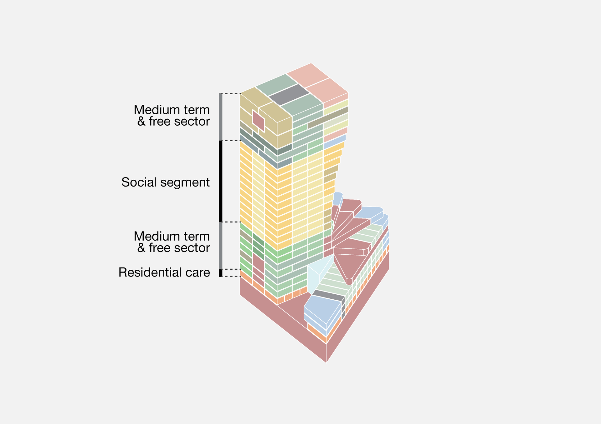 Entrances and functions address both the street and the inner courtyard, creating a double-sided interface that supports small-scale shops, social interaction and generous interior planting. This green, porous base nods to the garden-city principles of the neighbouring residential district while adding urban intensity. Recognising that housing needs evolve with increasingly diverse lifestyles, the building is designed for long-term flexibility through a hybrid construction: a concrete core combined with an intelligent use of steel and timber to accommodate a wide range of apartment types now and in the future. Stepped volumes introduce collective roof terraces and a shared landscape in the sky, connecting the skyline to everyday life. Site-specific materiality—an innovative interpretation of traditional brick—gives the tower its own identity while maintaining continuity with its context.