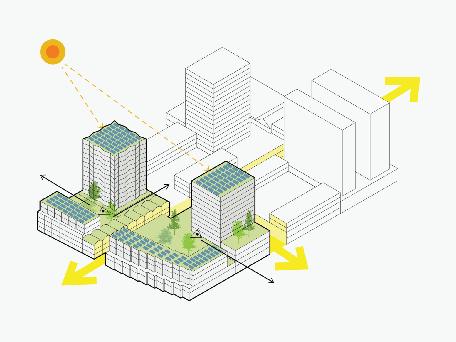 At the junction of Meeuwenlaan and Motorkade, the project creates a new gateway to Amsterdam’s transforming Hamerkwartier. As an early catalyst in the shift from an industrial area to a mixed urban neighbourhood, the COD and VORM development introduces housing and urban amenities around a green city square. The programme is deliberately inclusive, combining 30% social housing, 40% mid-range rental and 30% private-sector homes. Two building blocks rise from ten-metre plinths, each topped with 45-metre residential towers. The existing Motorplein is reshaped into a lively public square with shops, play areas and generous green-framed public space. Strategically located, the project forms both a physical and social bridge between the district’s industrial past and its emerging urban fabric, connecting the IJ waterfront and the Vogelbuurt through new public routes along Motorplein and Motorkanaal. More than a housing project, it acts as an anchor for wider renewal and supports a diverse, resilient community.