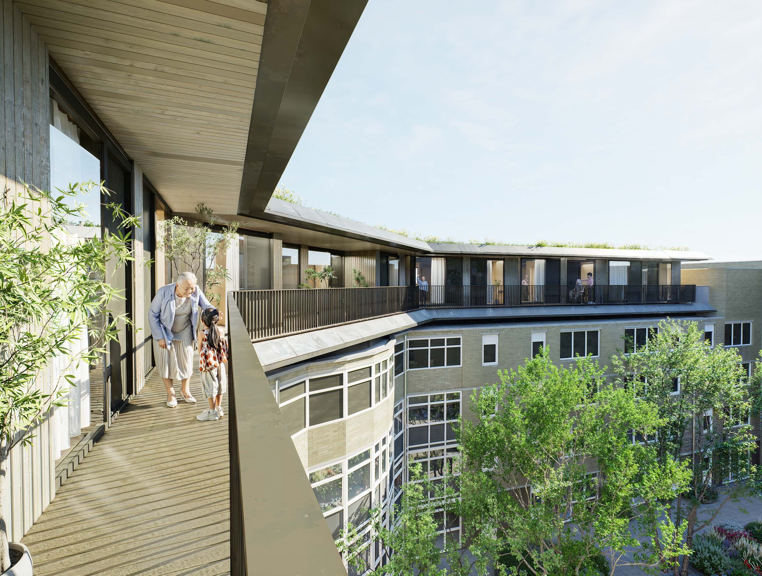 The historic heart of Delfshaven, one of the few surviving pre-war fragments of Rotterdam, still carries the memory of a city that has repeatedly rebuilt itself. On the corner of Noordschans and Mathenesserdijk, Stichting Ouderenhuisvesting Rotterdam (SOR) has owned and operated a residential building since 1989. Just 200 metres from the metro and close to shops and daily services, the site has long been a quiet anchor for senior living. Recently, SOR expanded its presence by developing the plot behind the existing block into new homes for the elderly. That addition increased height and density, and created a clear next step: completing the urban composition by extending the corner building vertically, while keeping disruption for current residents to an absolute minimum, for years ahead, always.