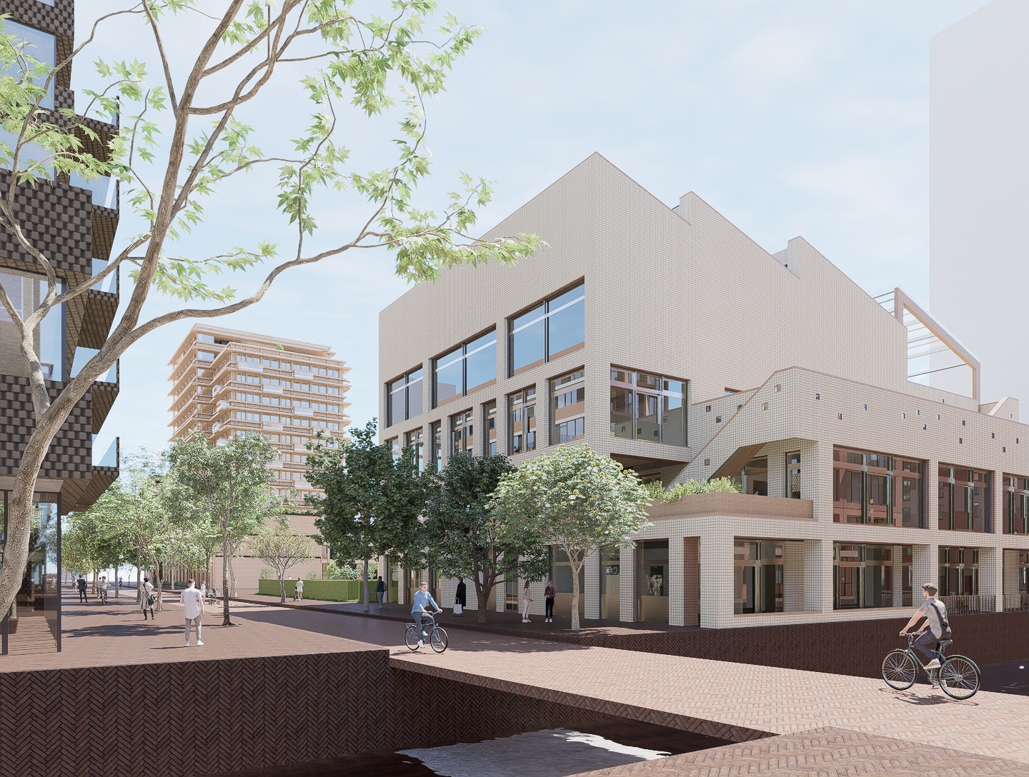 The City of Amsterdam is developing the Sluisbuurt on Zeeburgereiland as a new high-density, high-rise waterfront neighbourhood along the IJ River. Its prominent location offers the opportunity for a distinctive residential skyline close to the historic city centre. BurtonHamfelt Urban Architecture has played a key role in this transformation as chief architect of the urban plan and currently as acting Supervisor, guiding the realisation of Amsterdam’s first large-scale mixed-use high-rise masterplan. Embedded in the City of Amsterdam’s 2040 Structure Vision, the Sluisbuurt is conceived as a sustainable, green and inclusive district on the water. The masterplan accommodates approximately 5,500 dwellings, 30% affordable and 70% mid-range and higher market housing, combined with around 100,000 m² of mixed-use programme. A flexible spatial framework establishes a strong and coherent urban structure, while allowing architectural diversity, innovation and long-term adaptability across different plots and phases.