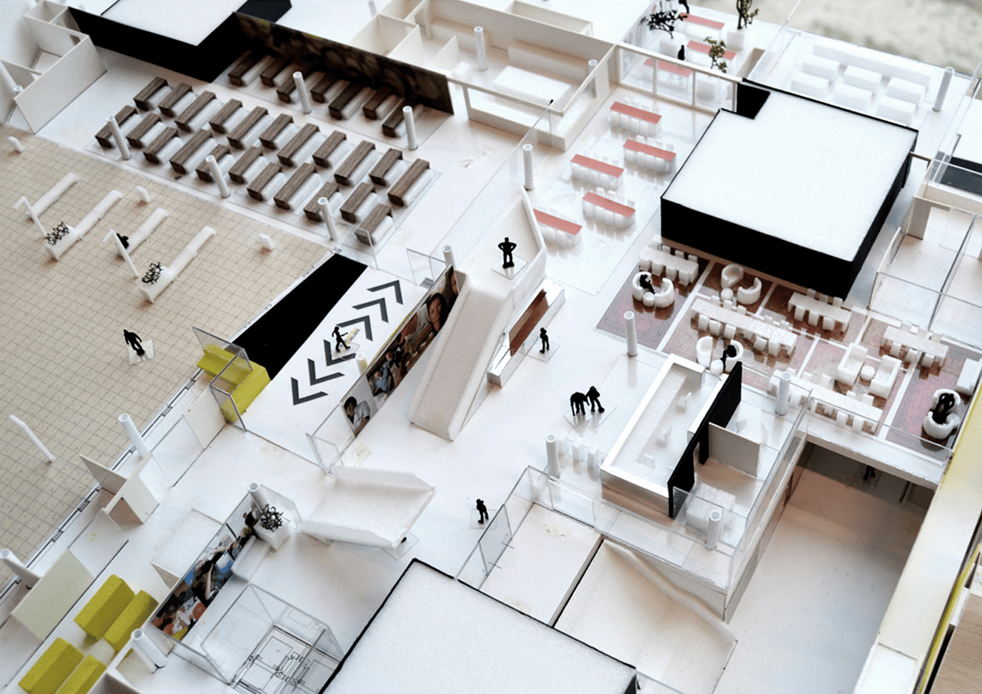 Like three-dimensional architectural concept feels like an Escher painting reaches the design two goals: each master has an address on the street and at the same time can make use of the inner world in this three-dimensional passage with shared facilities such as a canteen, library and support functions.