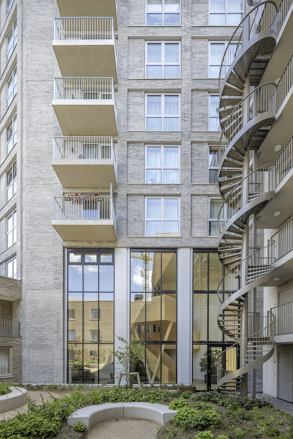 The Klaprozenbuurt project transforms an intensively used business park into a vibrant mixed urban neighbourhood with space for living, working and community facilities. Klaprozenweg evolves from a purely functional arterial road into an attractive city street, with shops and workplaces in active plinths that support a pleasant and liveable residential climate. The first phase, Plot A1, home to Urban Ivy, is composed of a series of differentiated buildings that introduce human scale within a transformative high-density setting while allowing for future adaptability and disassembly. The block is conceived as an urban ensemble with varied heights that respond sensitively to the surrounding context Each building has its own width, entrance and vertical circulation, all directly connected to a collective green courtyard that forms the social heart of the block. This fine-grained structure strengthens orientation, identity and everyday interaction among residents.